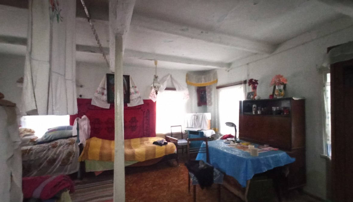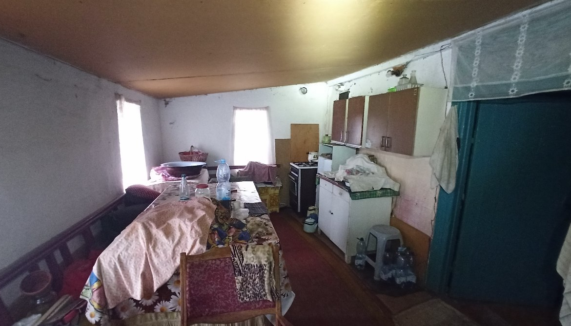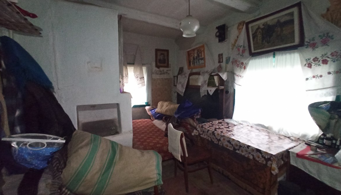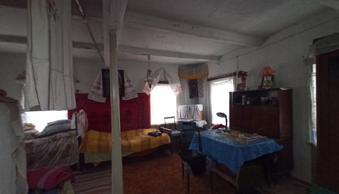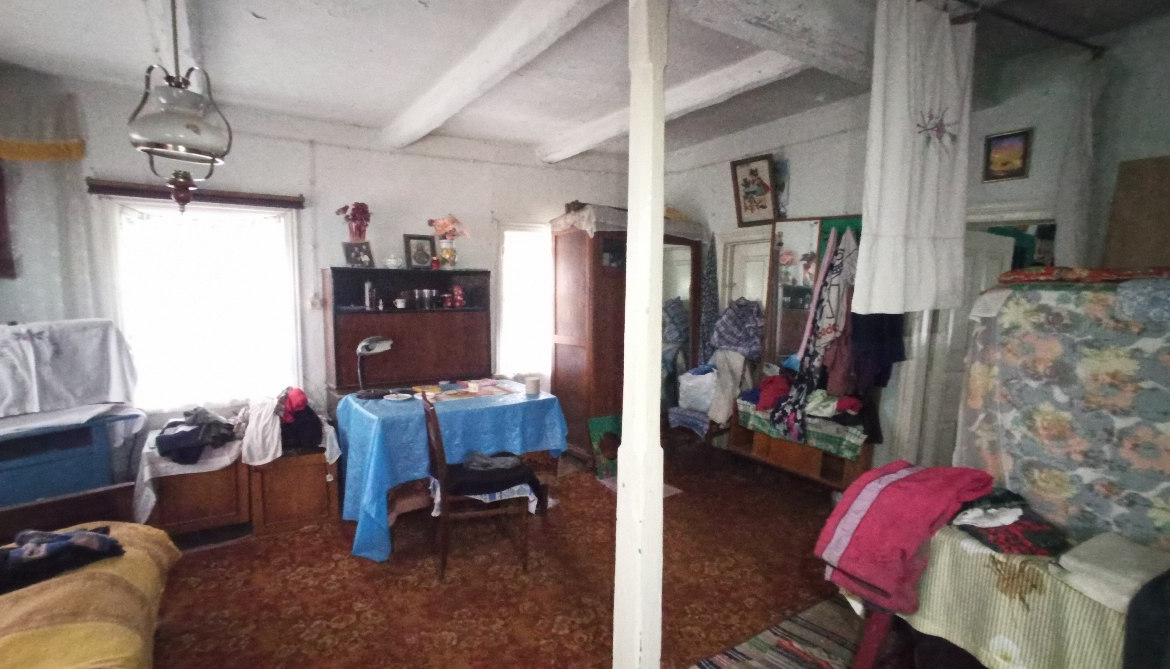 В будинку розташовані: холодна веранда, кухня (газова плита, холодильник), сіни та дві кімнати.