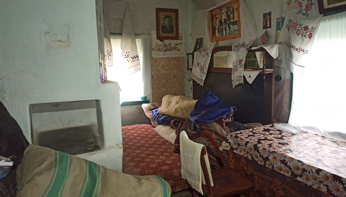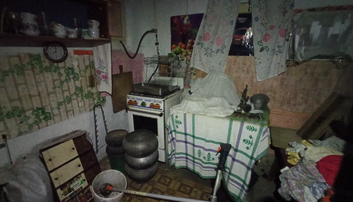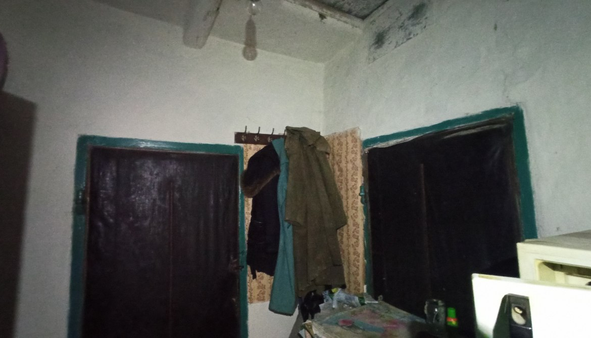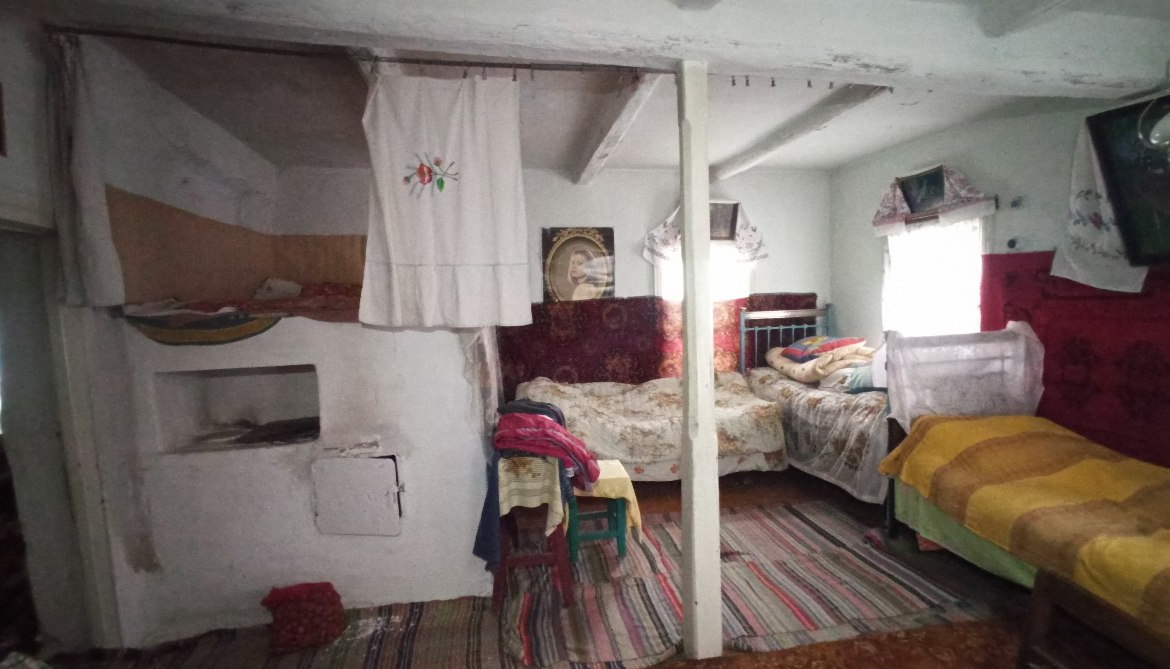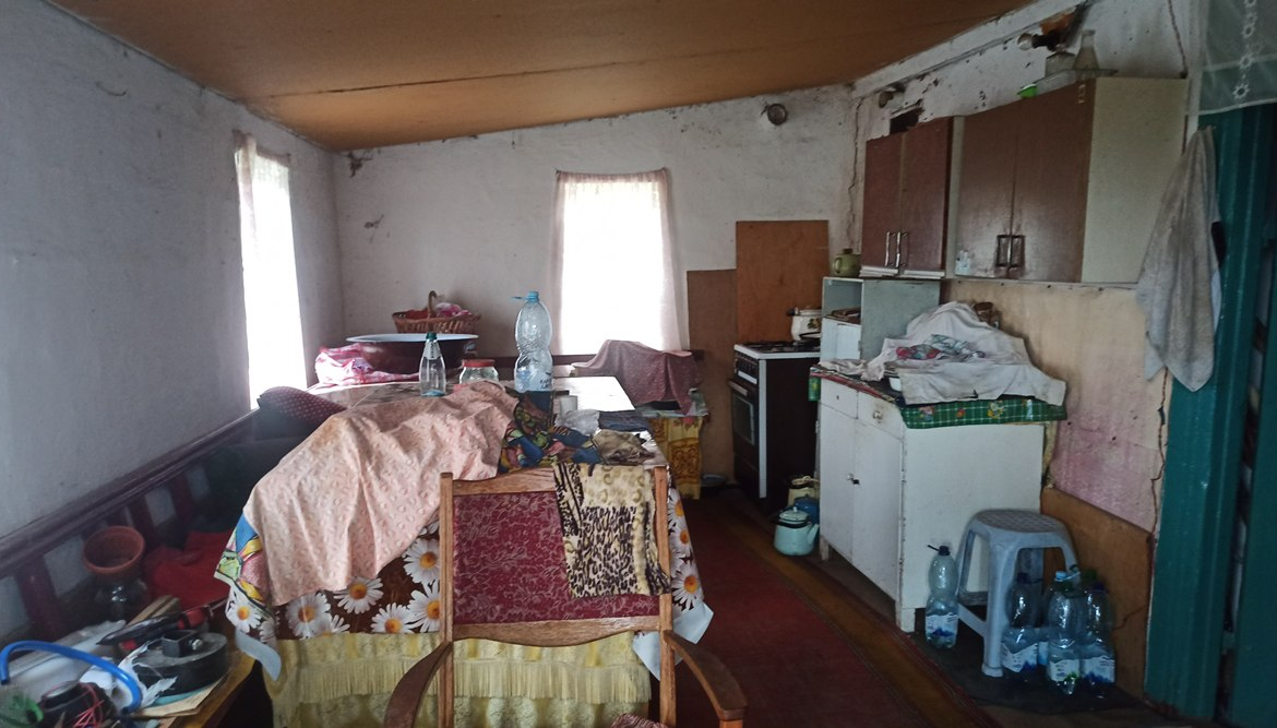 В будинку розташовані: холодна веранда, кухня (газова плита, холодильник), сіни та дві кімнати.