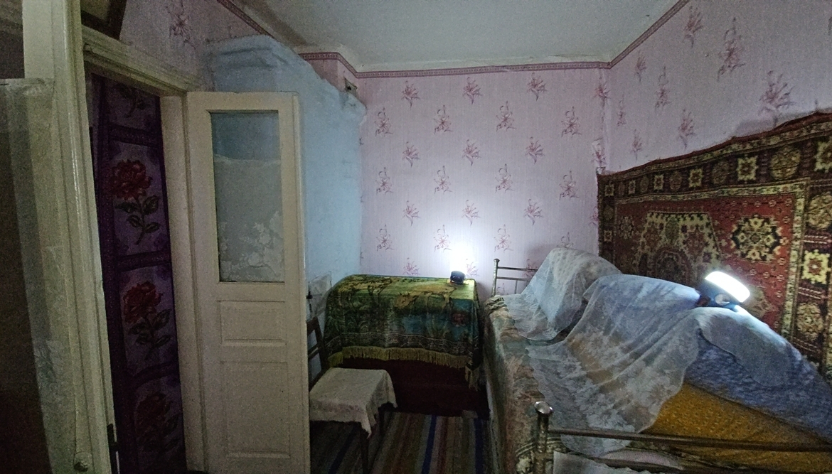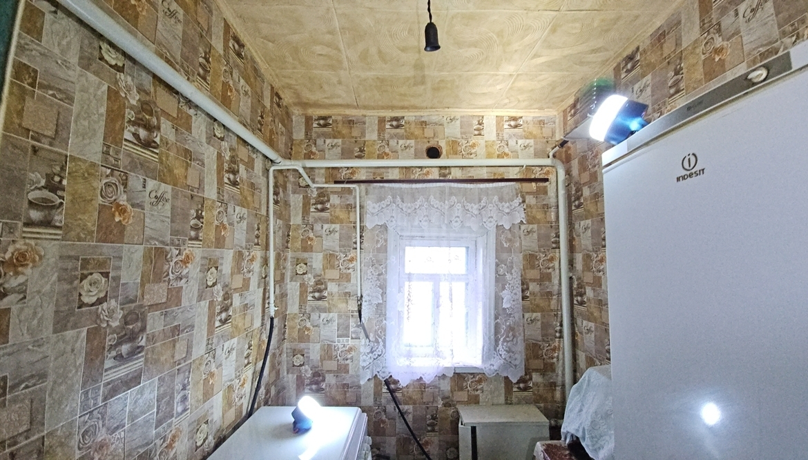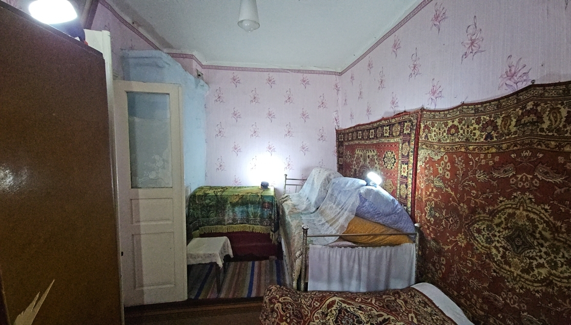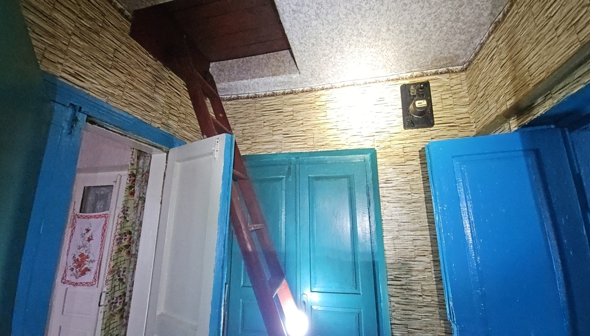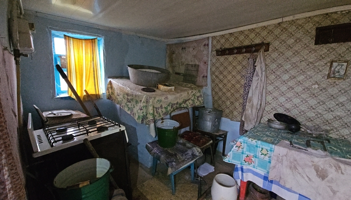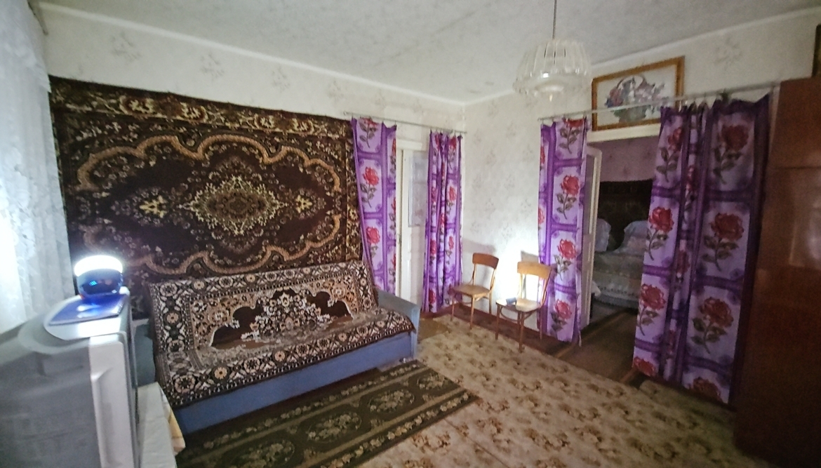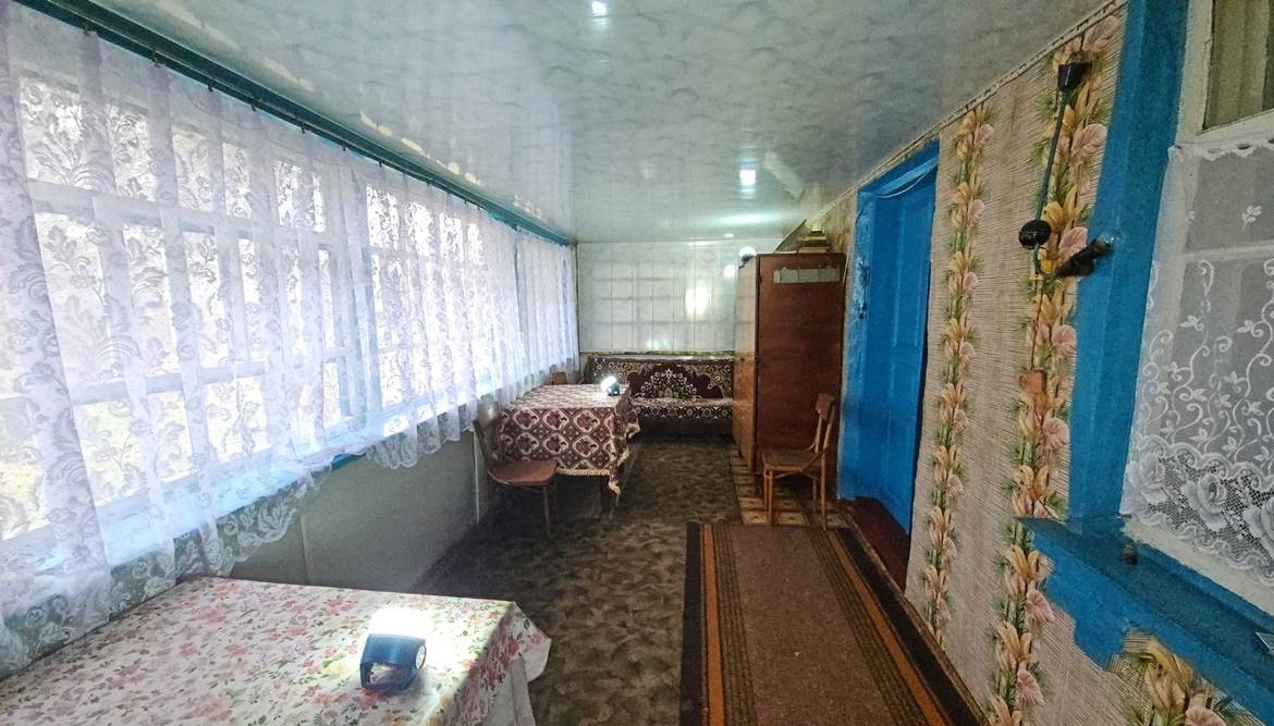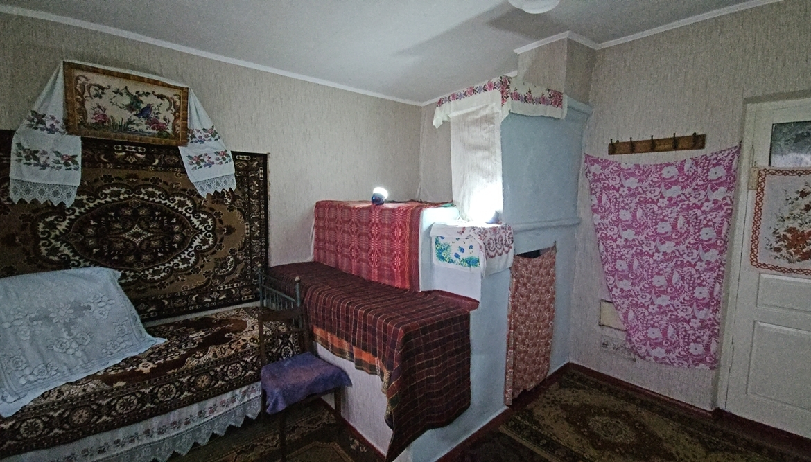 В будинку розташовані: прибудована (у 1996 р.) холодна веранда, сіни з виходом на горище, кухня (газова плита, парапетний газовий котел, холодильник), кімната з діючою піччю та грубою, прохідна зала та ще одна кімната зі скринею. Підлога – дерево, стіни – шпалери.