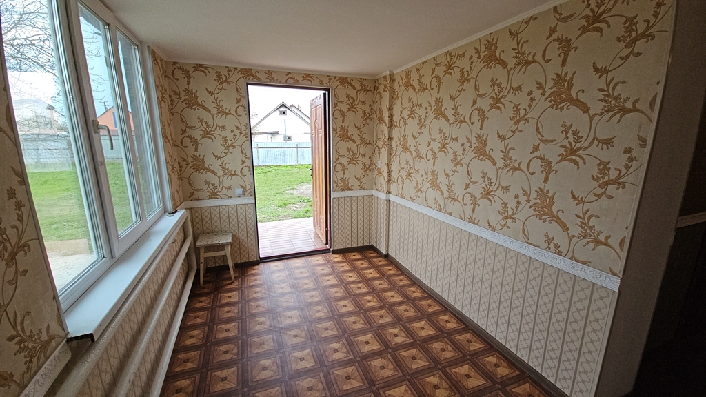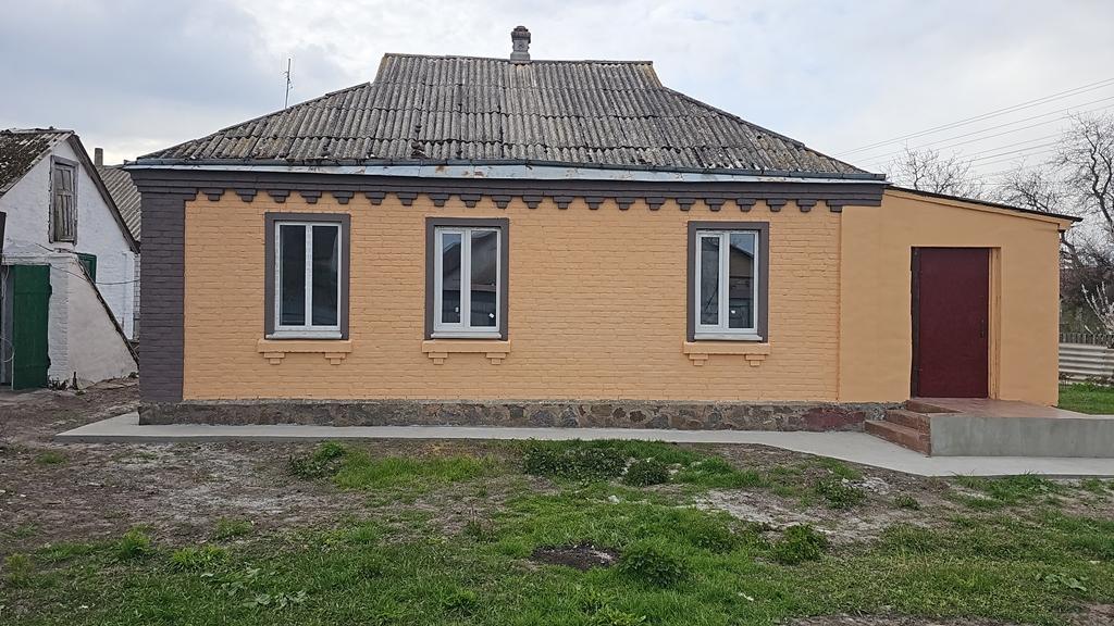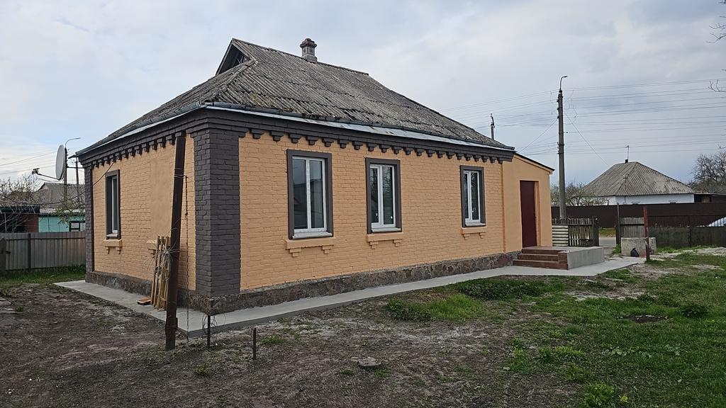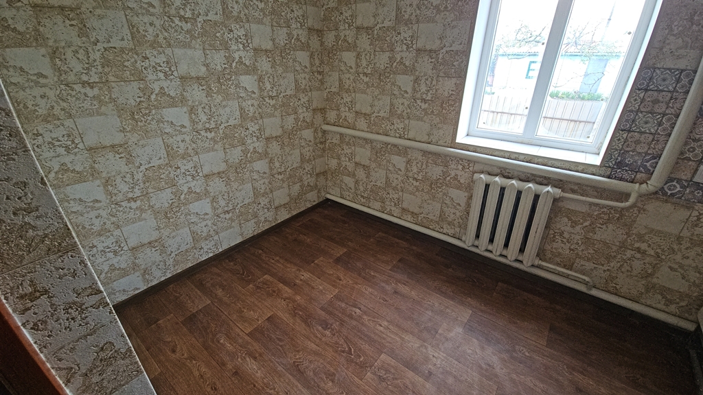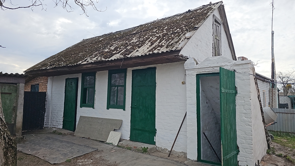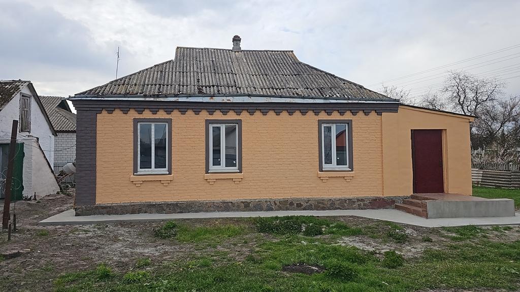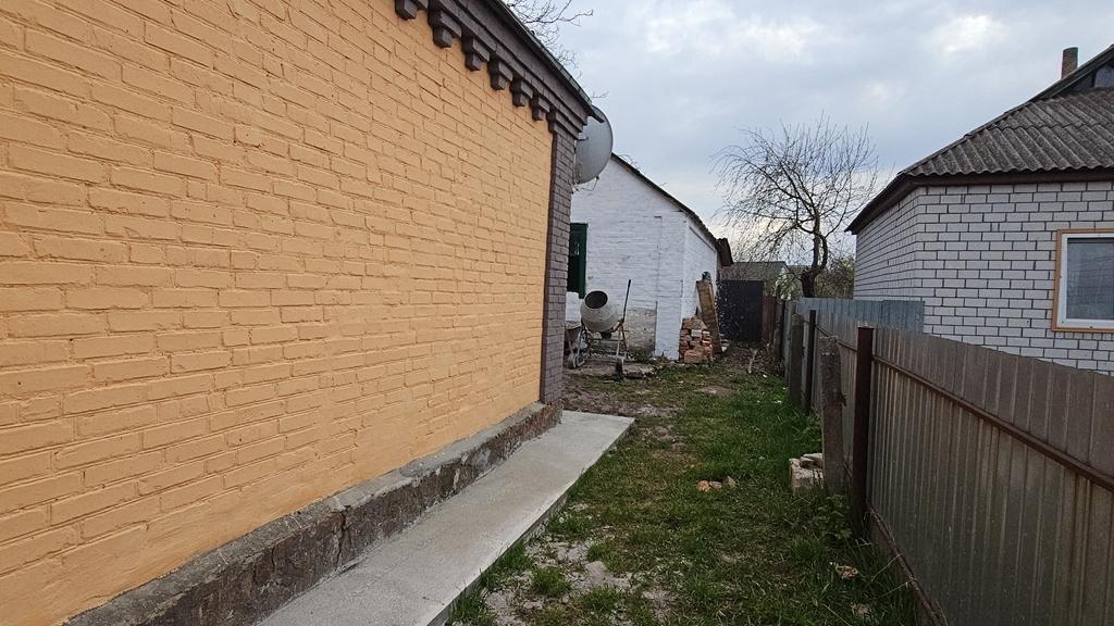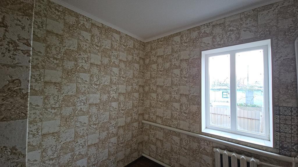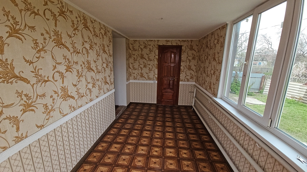 стіни Цегла, фундамент бутовий камінь, вікна металопластик, підлога ліноліум, Міжкімнатні двері дерев’яні.