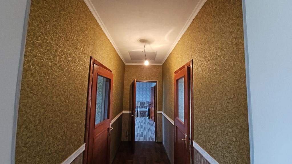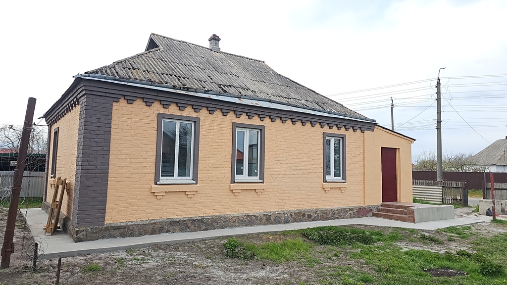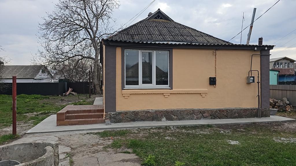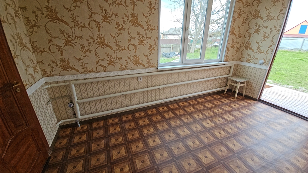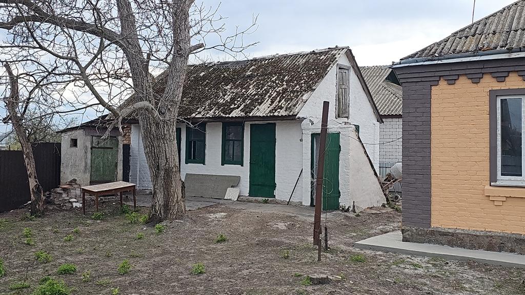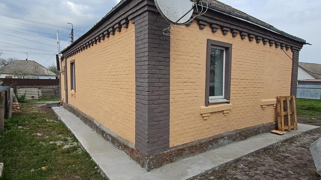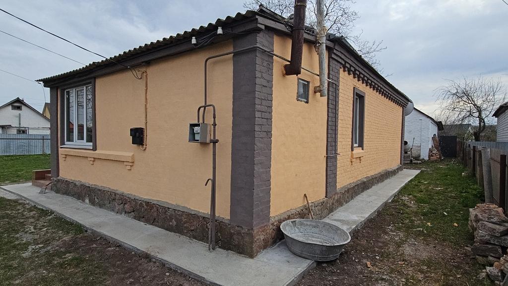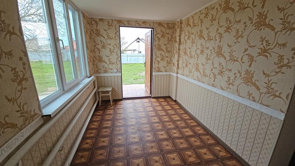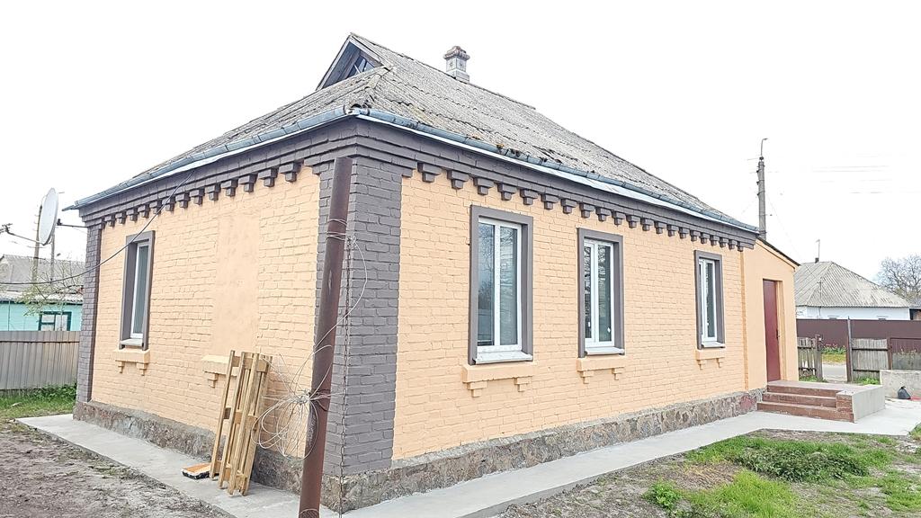 стіни Цегла, фундамент бутовий камінь, вікна металопластик, підлога ліноліум, Міжкімнатні двері дерев’яні.