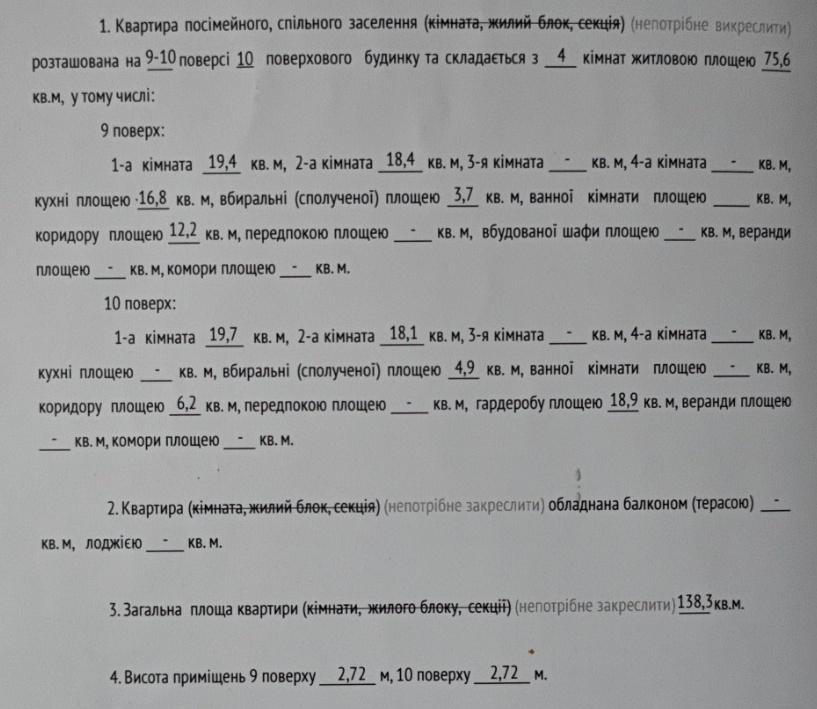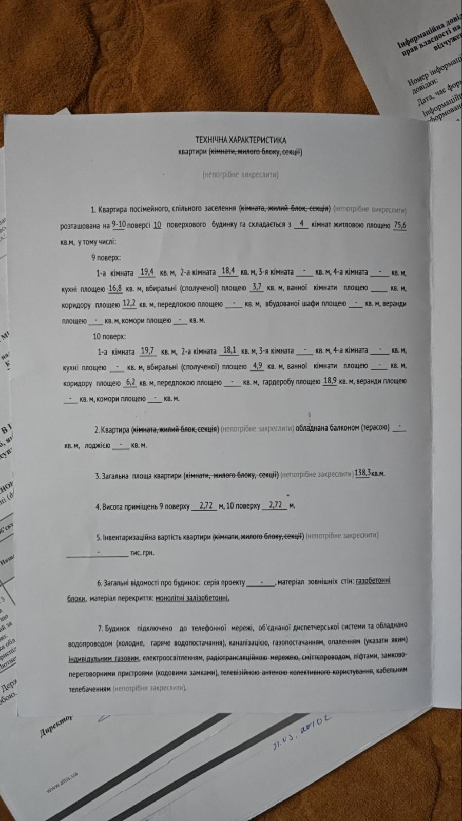 Квартра двох поверхова 9-10 поверх, загальна площа 138 кв.м. в квартирі майже закінчений ремонт на підлозі першого поверху викладено плитка, зроблено нова сантехніка, монолітна електрична проводка, стіни рівні пофарбовані декоративною фарбою, санвузол обкладено плиткою, по всій квартирі зроблено натяжну стелю, встановлено радіатори опалення, карнизи для штор, металопластикові вікна.