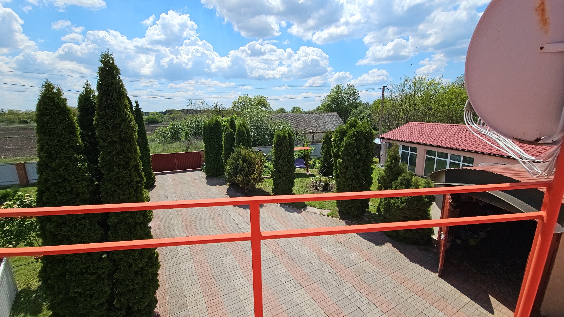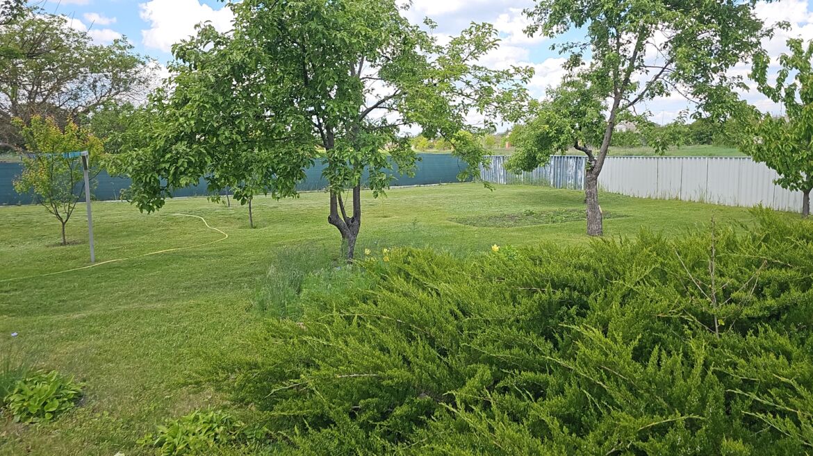 Також на цій ділянці є своє озерце з рибкою, фруктовий сад (черешня, яблуні, 150 горіхів), город. На ділянці, яка викладена тротуарною плиткою, ростуть туї, газонна трава.