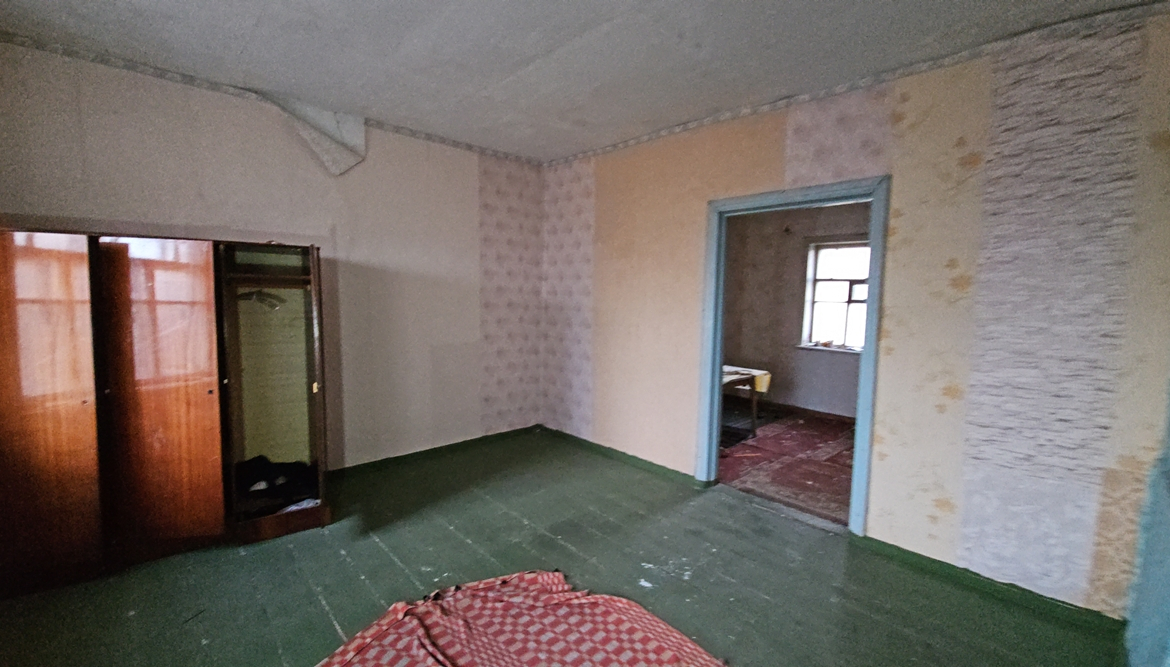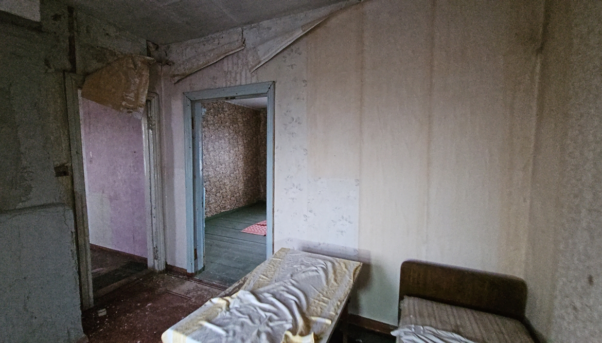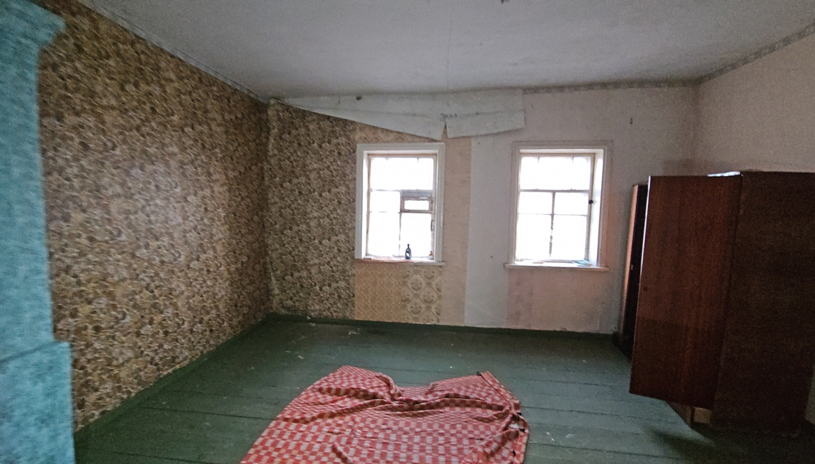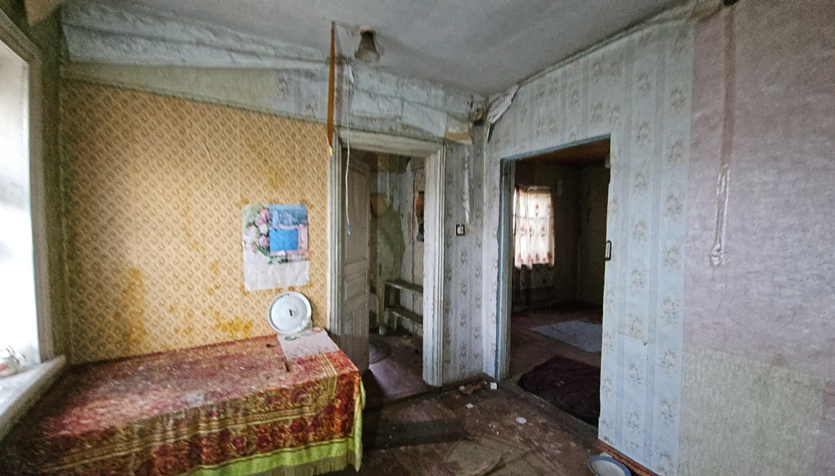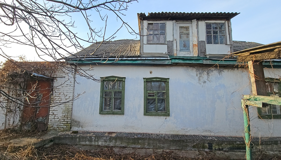 Ця будівля має дві прибудовані цегляні, холодні веранди, сіни, кухню , три кімнати (одна прохідна), сходи на другий поверх, на якому розташовані, ще дві кімнати. Будинок потребує ремонту!
