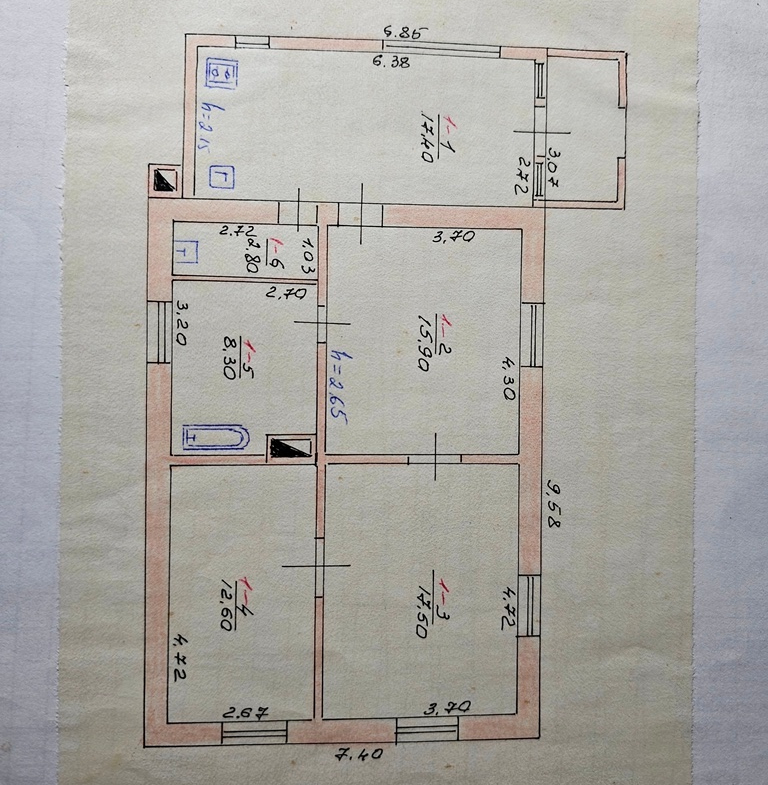 Цегляний будинок, загальною площею 74.5 кв.м., побудований у 1973 році, газифікований, електроживлення 3 фази, водопостачання – свердловина, опалення- газове та твердопаливне, каналізація – вигрібна яма, дах – шифер, вікна – металопластикові.