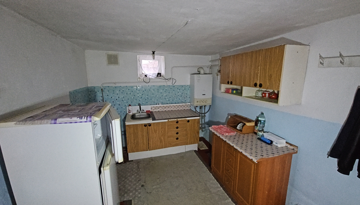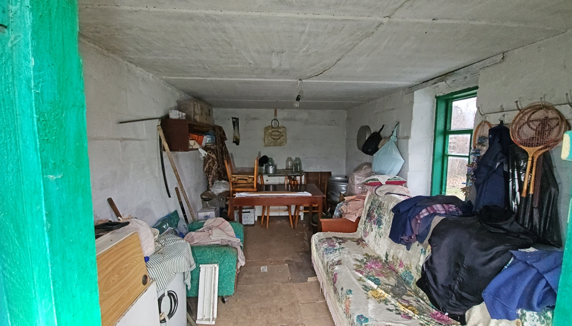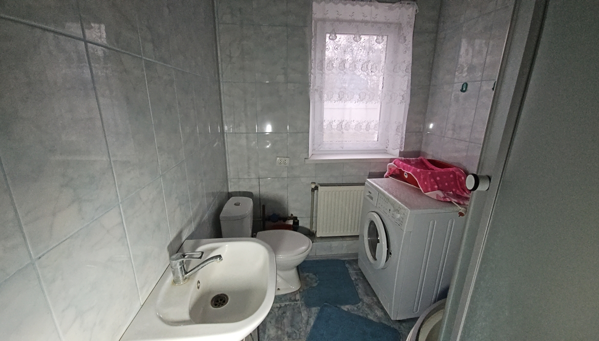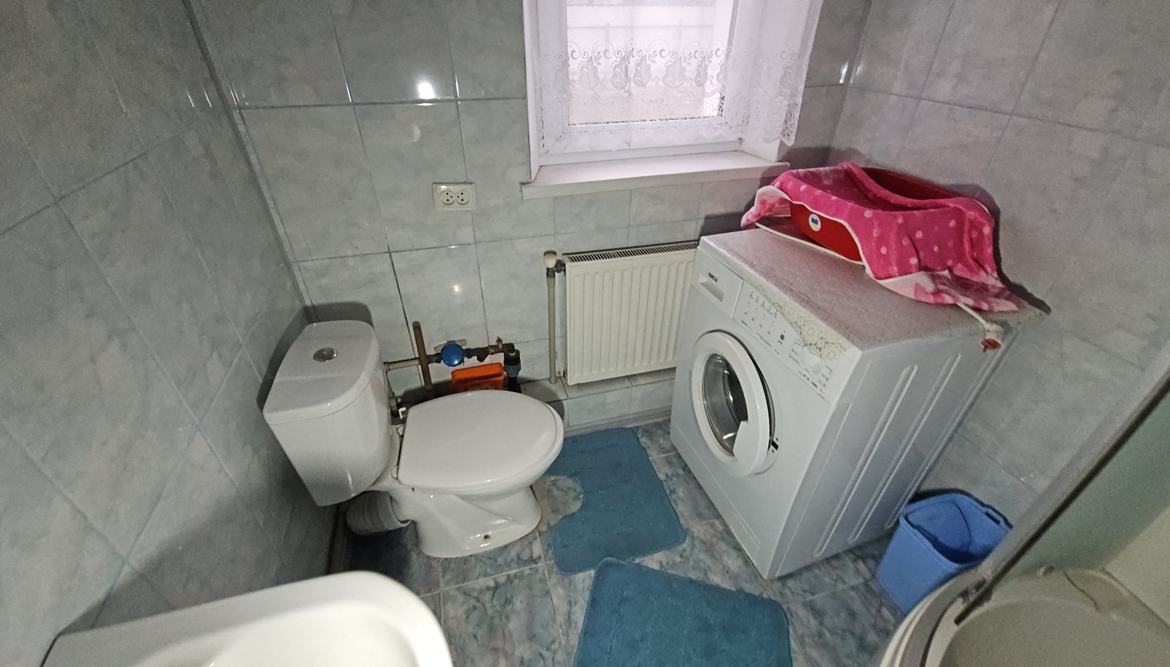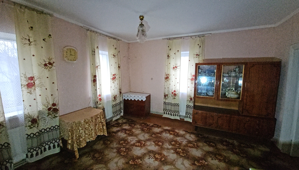 В будинку розміщені: кухня ( газова плита, мийка, газовий настінний двоконтурний котел, холодильник), санвузол (душова кабіна, унітаз, пральна машина, рукомийник), дві кімнати (стіни – шпалери, підлога – дерево, стеля – фарбування).