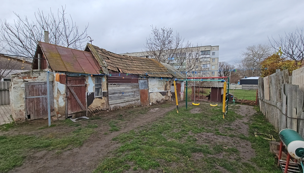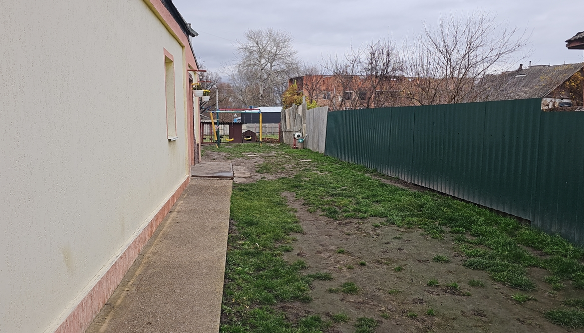 Господарство огороджене парканом з металопрофіля. На подвір’ї побудований дитячий майданчик, вольєр для собаки, свердловина, батут.