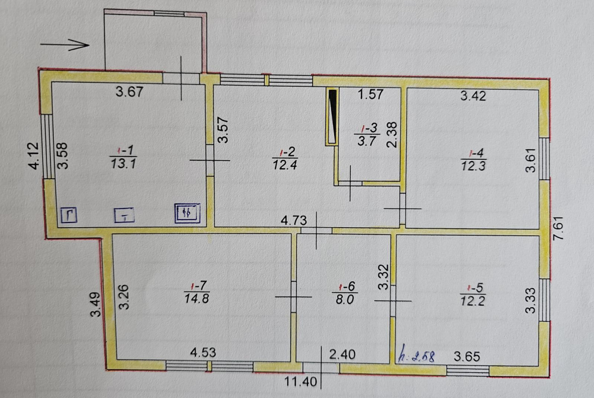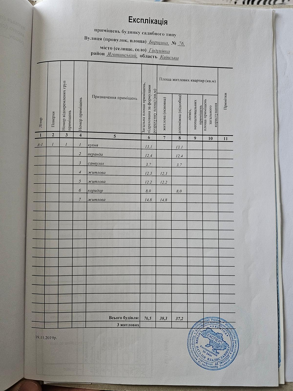 загальна площа будинку який пропонується 76,5 кв.м. житлова площа будинку 39,3квм збудований 1987 році, висота стелі 2,6 метра