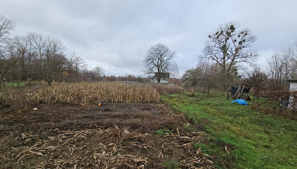 На земельній ділянці 10 соток розташовані: господарський блок на два відділення, вхідний погріб, криниця. Подвір’я має унікальну огорожу – з дерев’яних піддонів. Також на цій земельній ділянці є город та невеличкий садок.