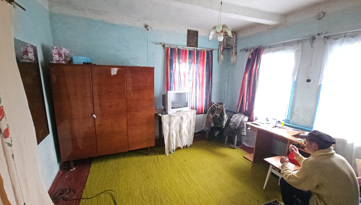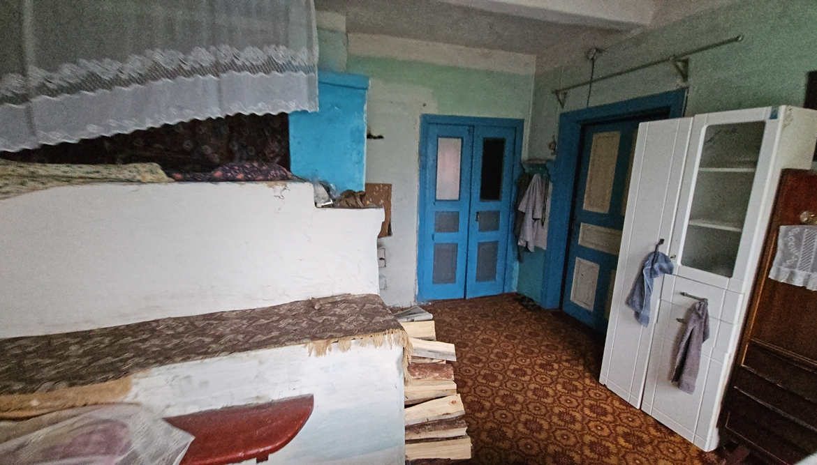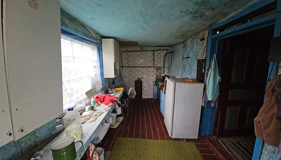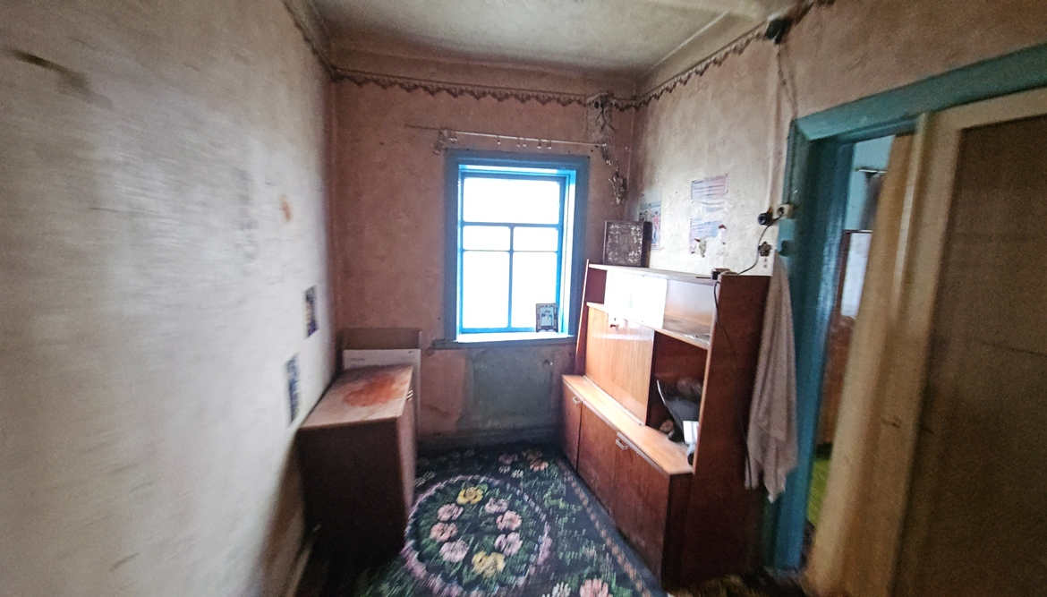 В будинку є прибудована холодна веранда, в якій розташована кухня (холодильник, настільна газова плита), сіни, кімната (її можна облладнати під санвузол, є ванна), кімната з піччю та ще дві кімнати (одна прохідна). Підлога – дерев’яна, стіни та стеля – побілка.