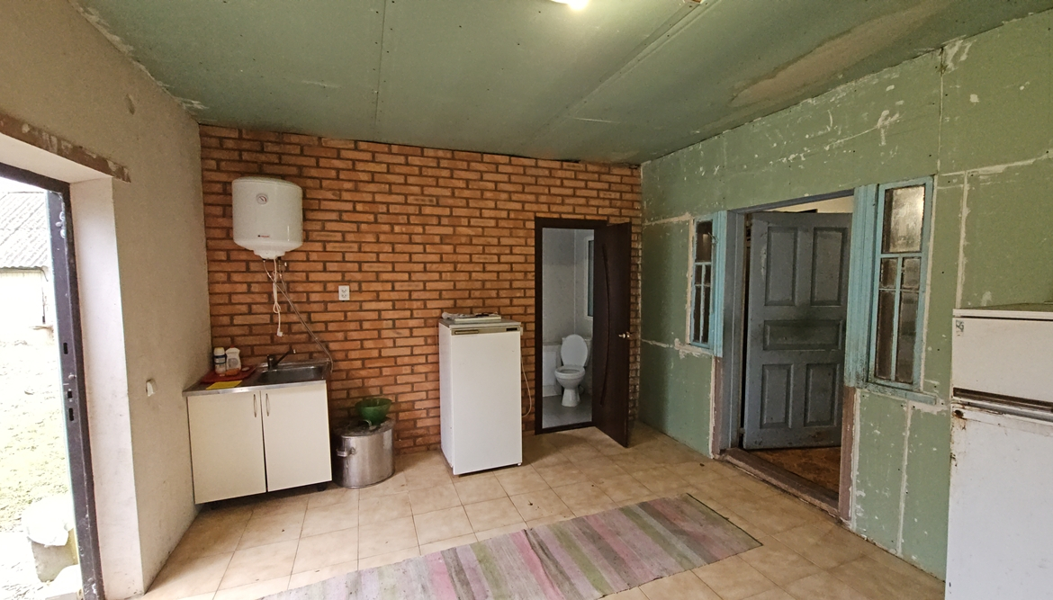 Оселя складається з прибудованої цегляної холодної веранди (підлога – плитка, бойлер), суміжного санвузла (душ, унітаз, рукомийник), сіней з виходом на горище, двох кімнат (одна прохідна), кімнати-комори та кімнати – кухні з діючою піччю (є газова плита).