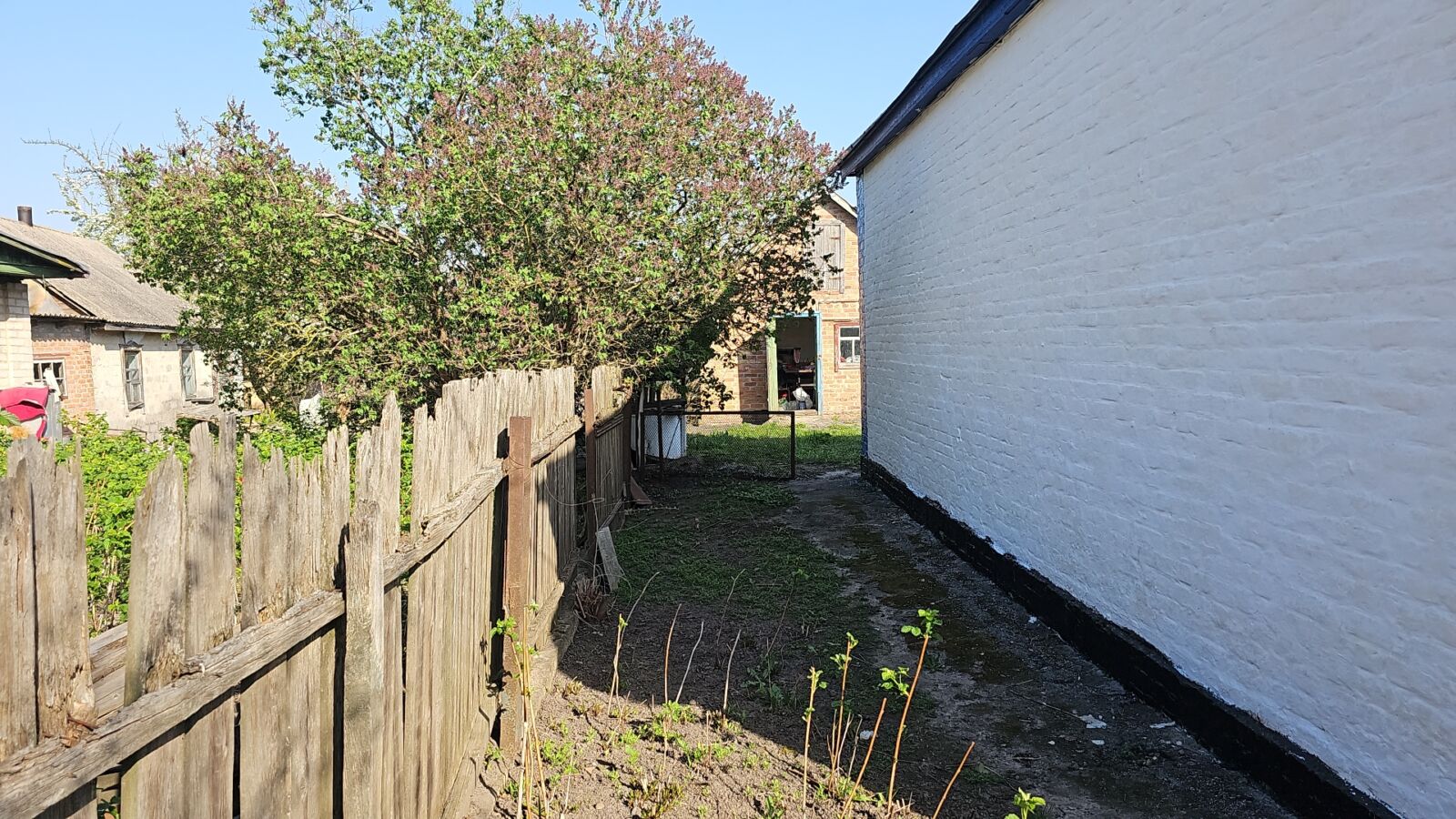 Земельна ділянка приватизована, насипна під’їзна дорога, двір з невеликим уклоном до берега річки.