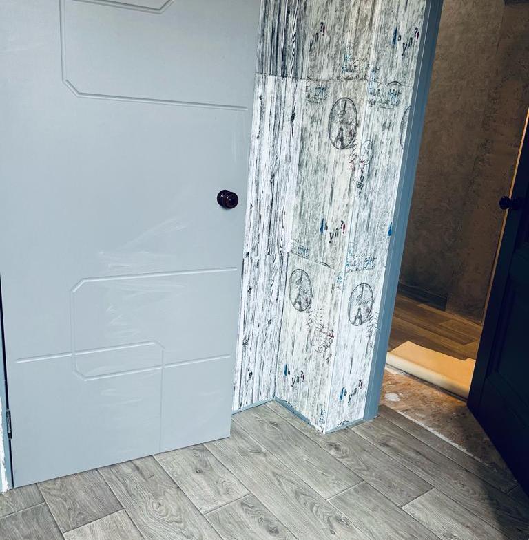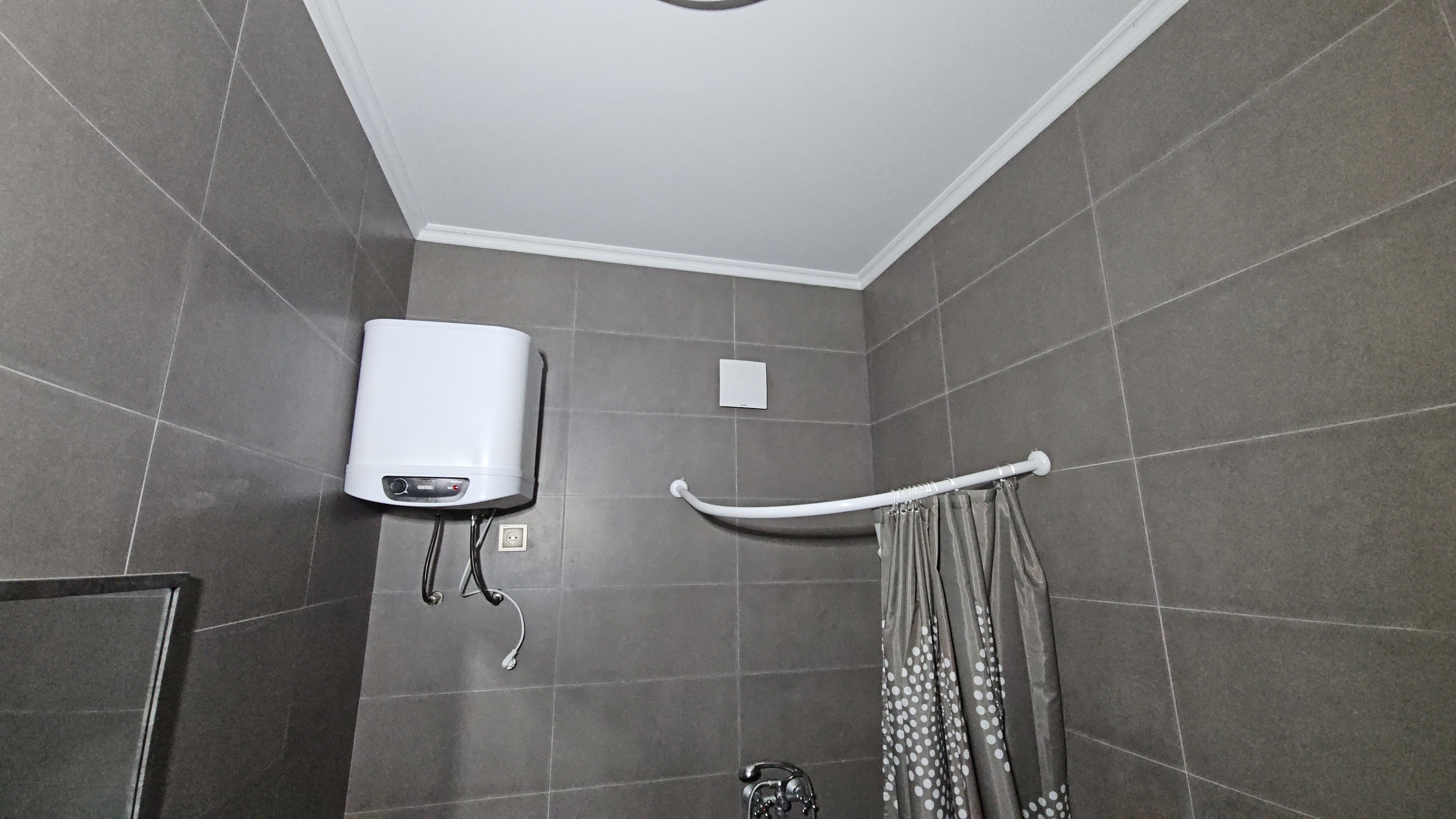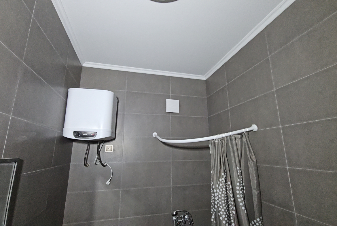 Обладнано смісний санвузол, душова кабінка, унітаз, рукомийник, передбачено місце для пральної машинки. Електричний бойлер 50 літрів.